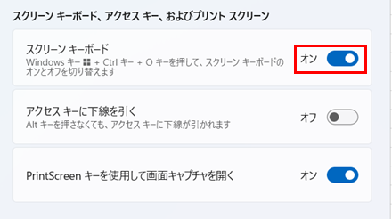 スクリーンキーボードで、入力テストをして、正常に入力できれば、ハードウェアキーボード不具合の可能性が高くなります。反対に、スクリーンキーボードでも入力できない場合は、ソフトウェア不具合の可能性が高くなります。